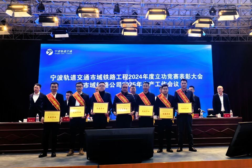 2025年1月21日,宏润建设宁波至象山市域(郊)铁路(宁象线)SGXS09标项目部获宁波轨道交通市域铁路工程2024年度立功竞赛“施工先进集体”第一名。
