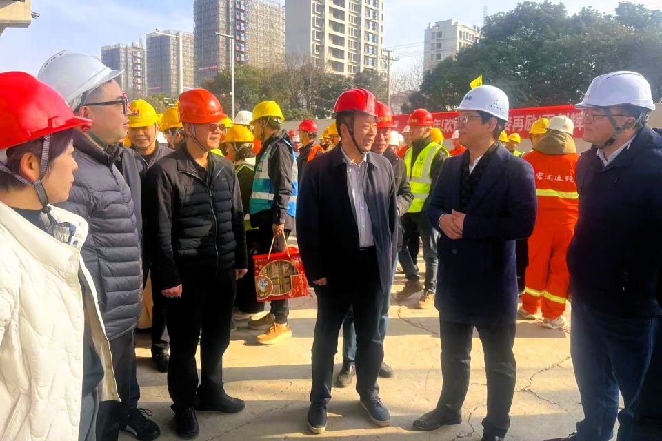 2025年1月22日,宁波市综合枢纽建设中心党委委员、副主任王星等领导赴宏润宁波秋实快速路项目,走访、慰问春节期间“不停工”项目一线工作者。