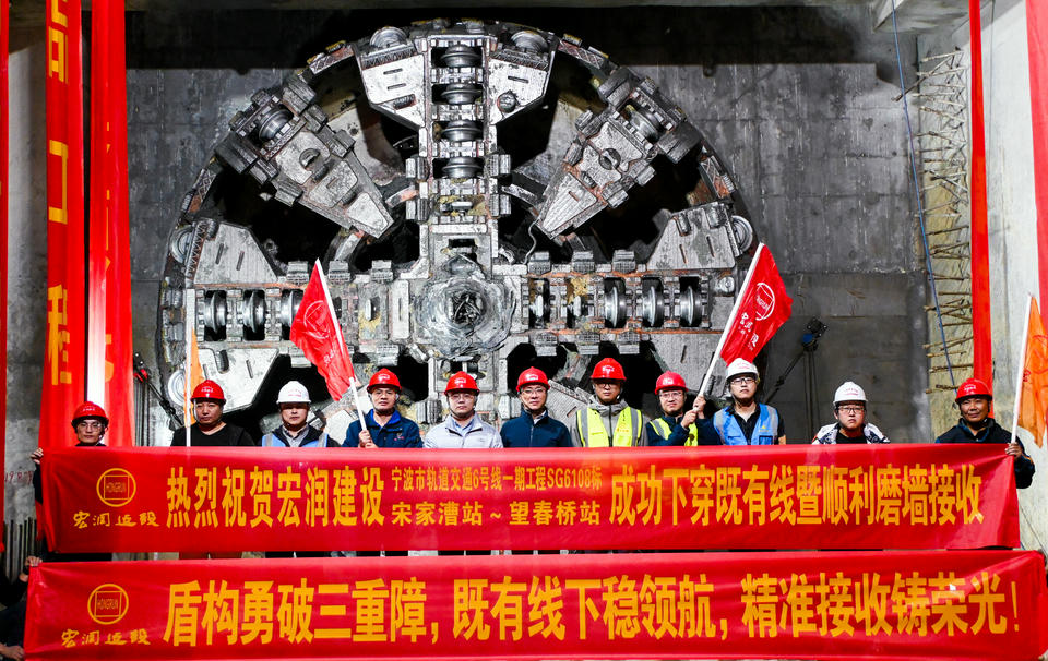 2024年12月6日,宏润宁波市轨道交通SG6108标宋家漕站-望春桥站区间右线盾构机连续磨穿三道钢筋混凝土地连墙,并下穿既有运营线地铁车站后顺利接收。