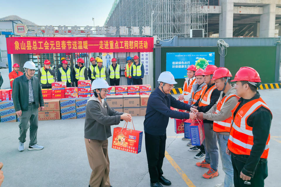 2025年1月14日,象山县总工会党组书记、副主席胡海峥一行前往宏润宁象线市域铁路SGXS09标施工现场,向坚守岗位的工作人员致以节日关怀和温暖问候。